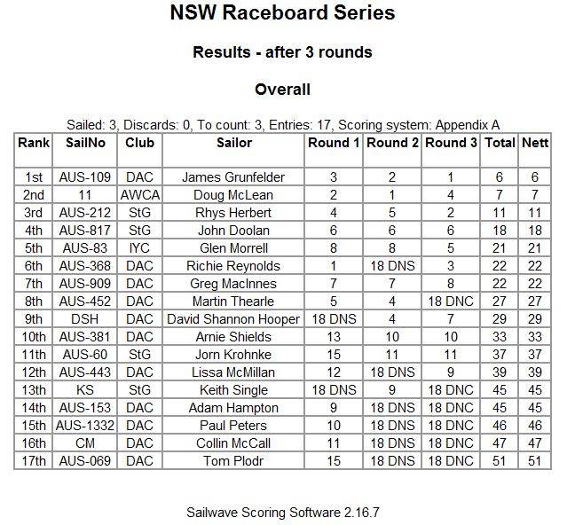 NSW Raceboard Series - after round 3