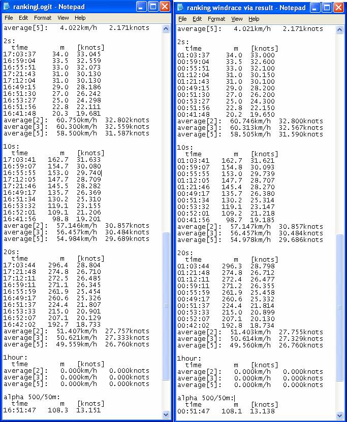 Windsurfing comparison Logit to Windrace