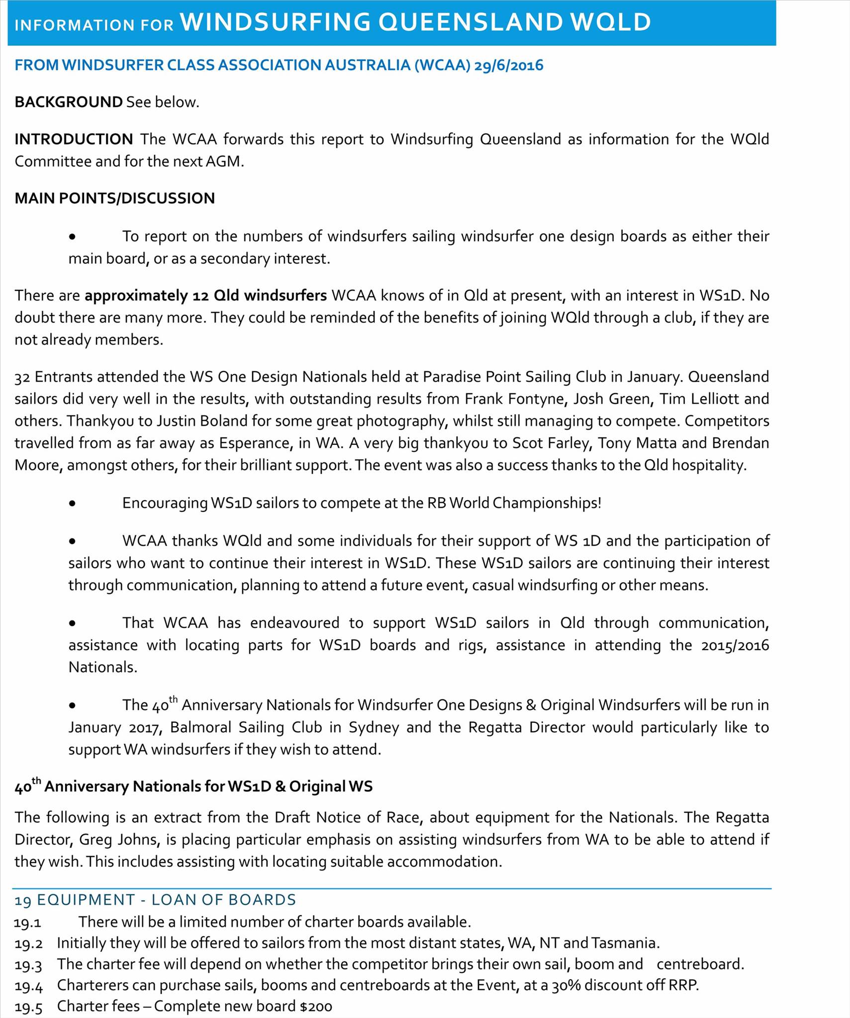 WQ AGM MINUTES 2016 + Windsurfer One Design Report