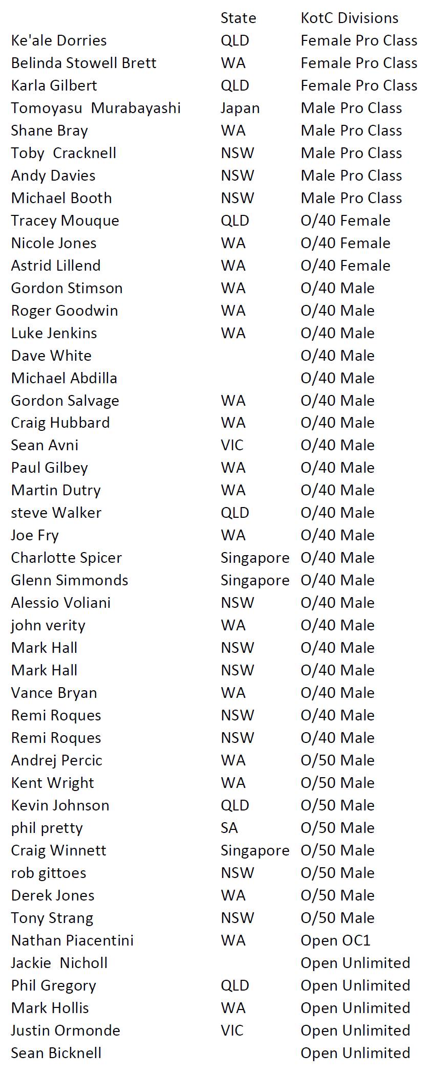 2016 Stand Up Surf Shop King of the Cut Entry List