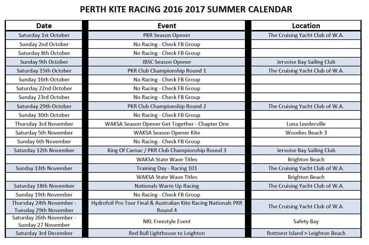PKR & WA Racing Season Calendar 2016/2017