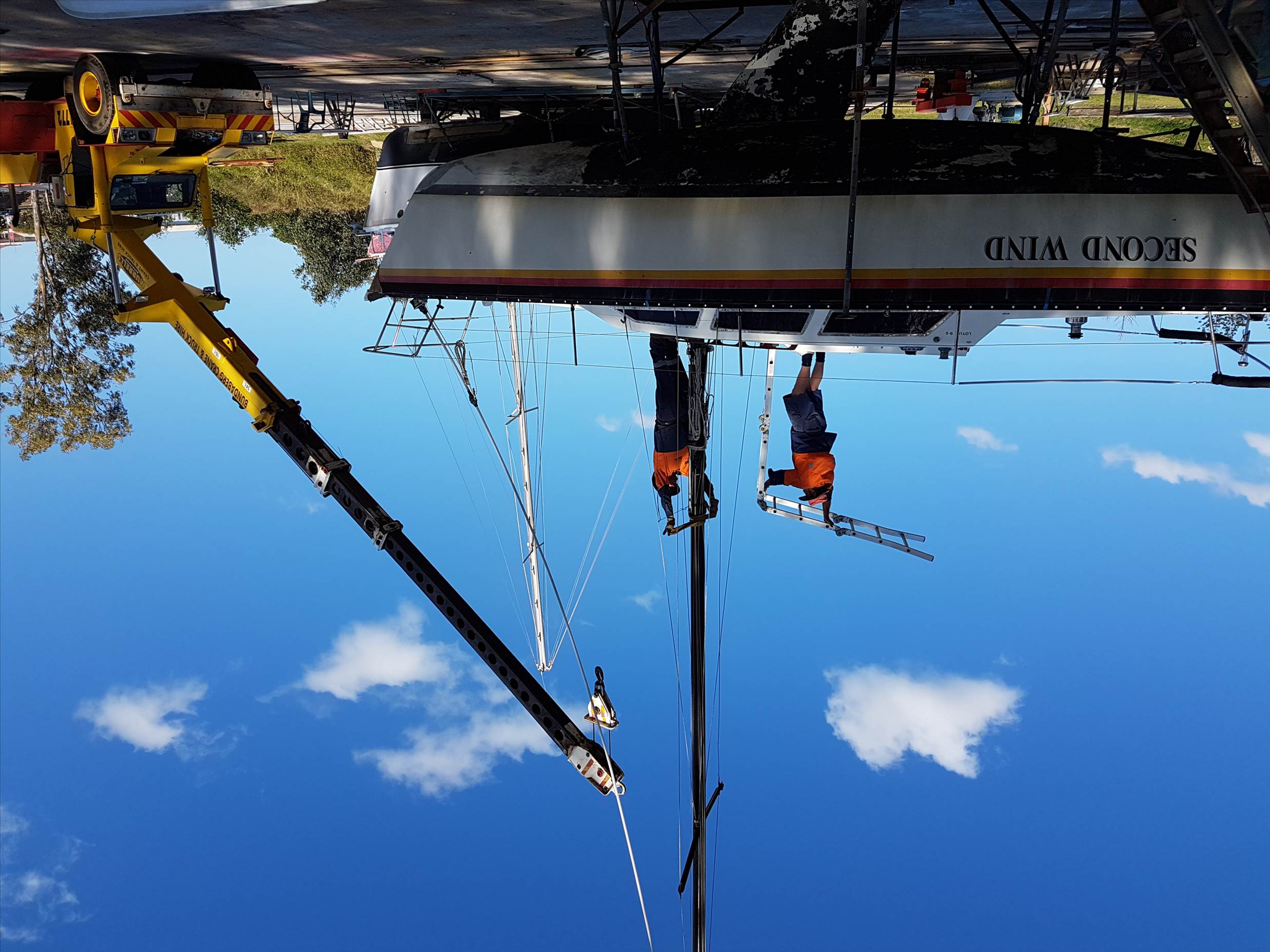 Bamboo A frame for mast removal.