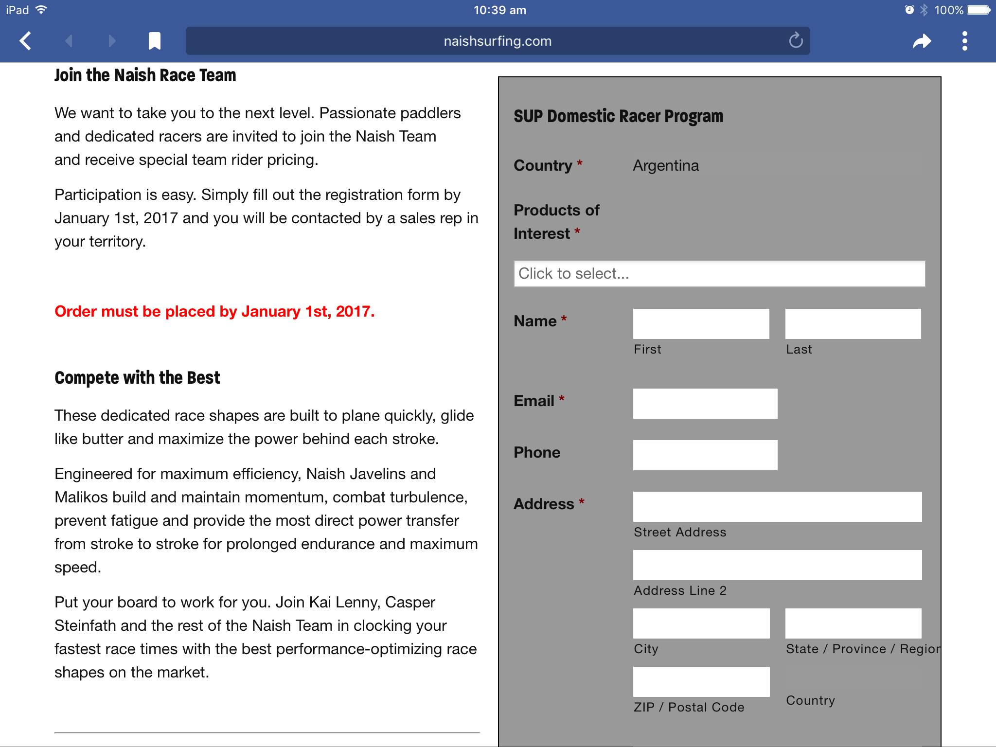 Board price for team Naish