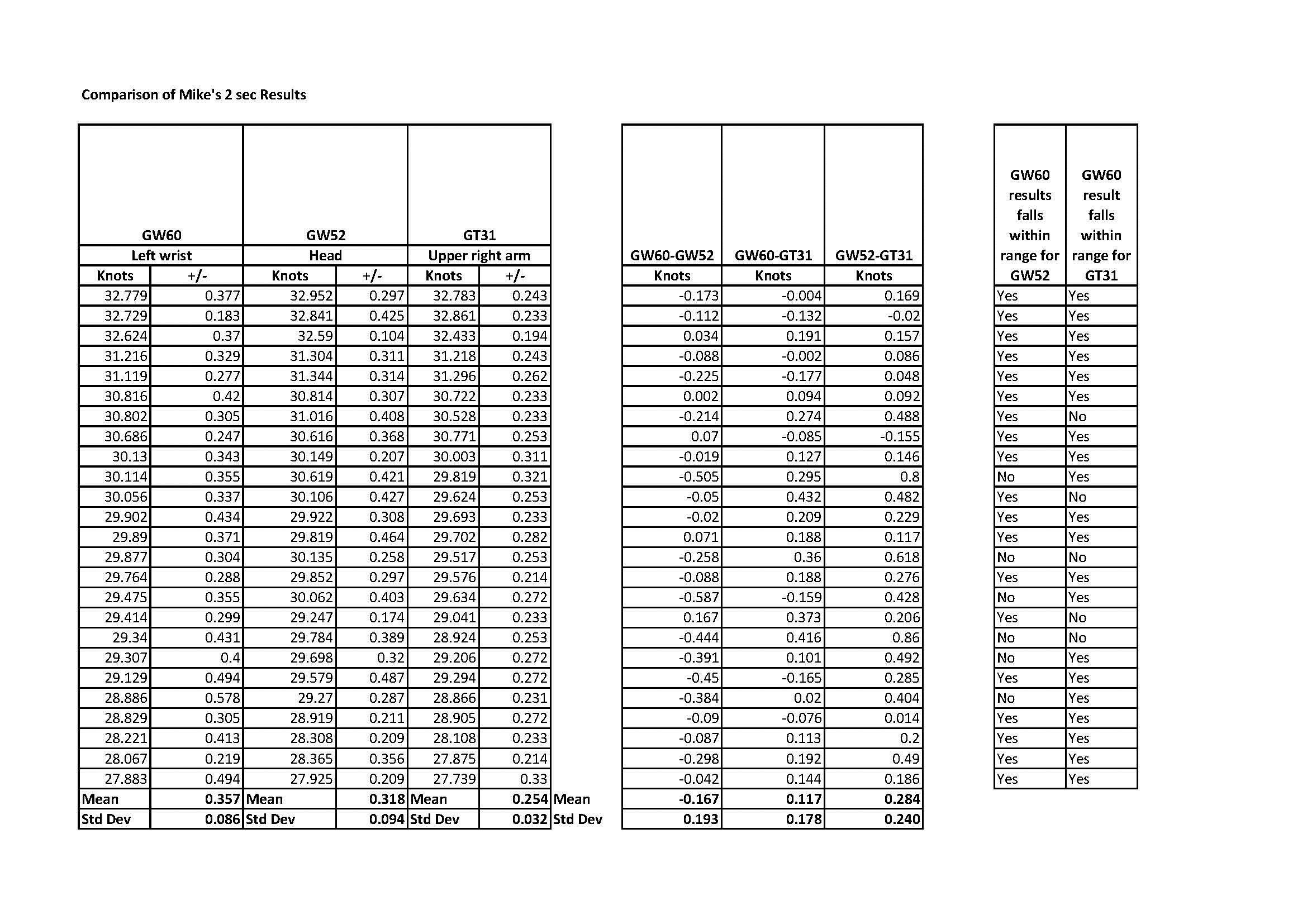 Comparison of Mike's 2 Sec Results