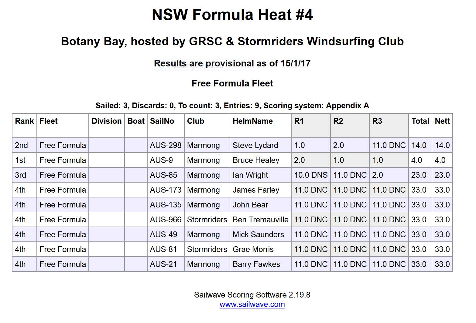 NSW Formula Series, Heat #4 this Sat. 14th January