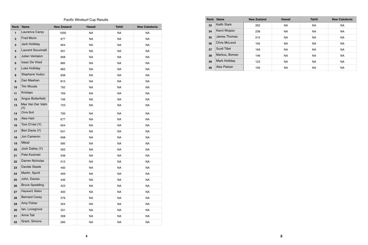 Windsurfing Pacific Windsurf Cup Results