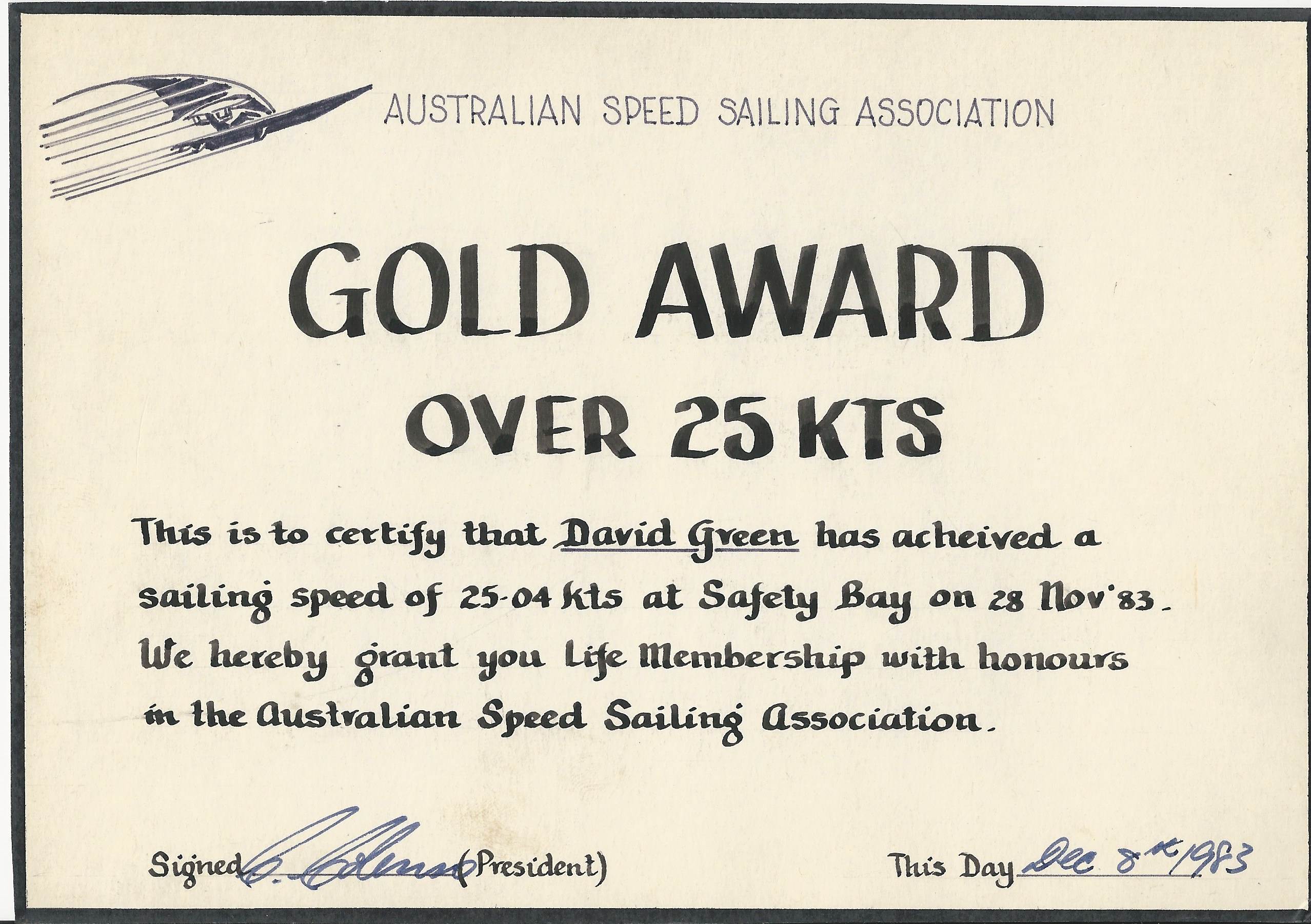 Windsurfing Really Old Speed Award
