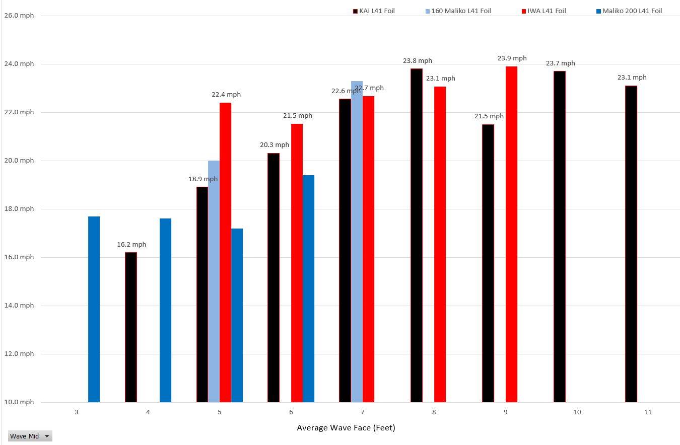 Stand Up Paddle Foils vs Avg Wave Face Size