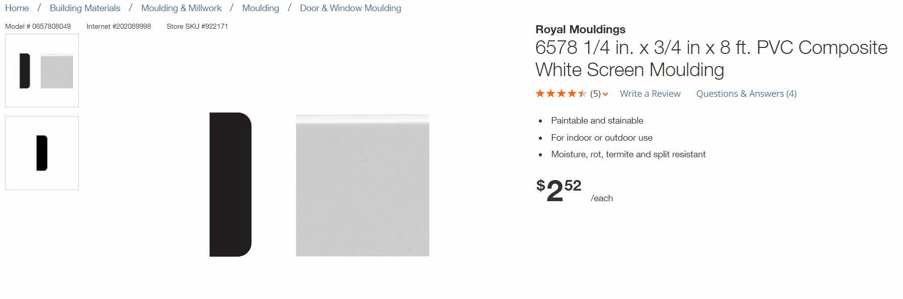 HOME DEPOT PVC Screen Molding