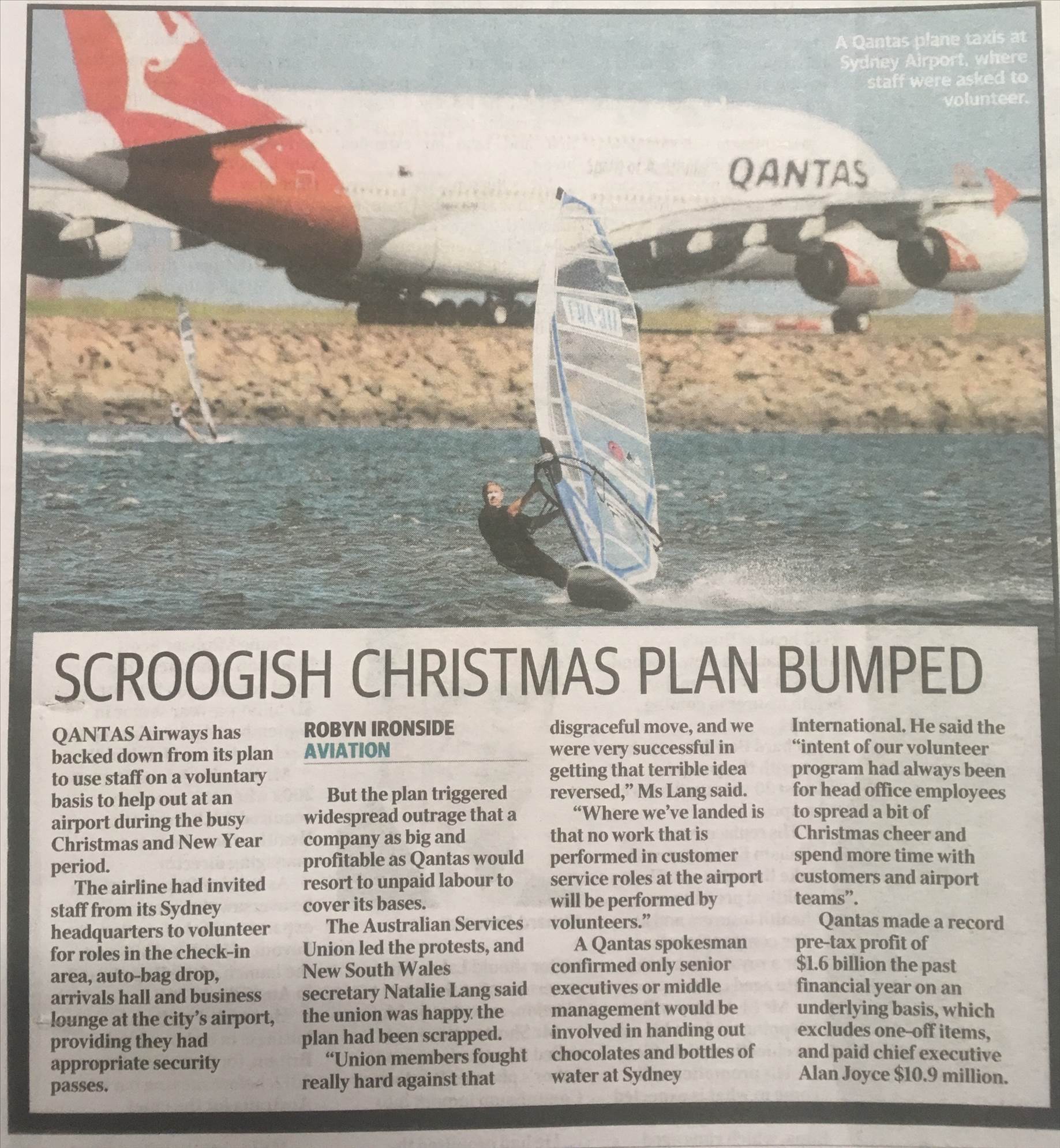 Article in Herald Sun with nice windsurf pic
