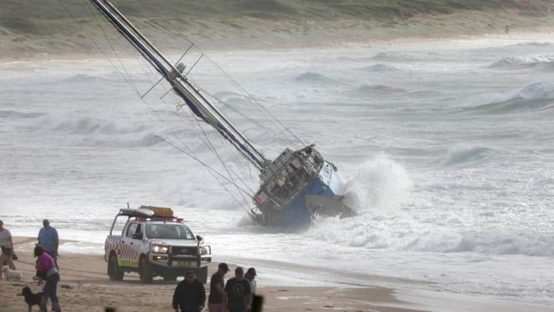 Yacht aground on lee shore near Sydney