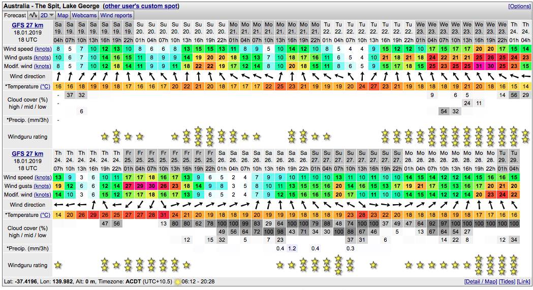 Windsurfing Windguru 18-01-19 18utc
