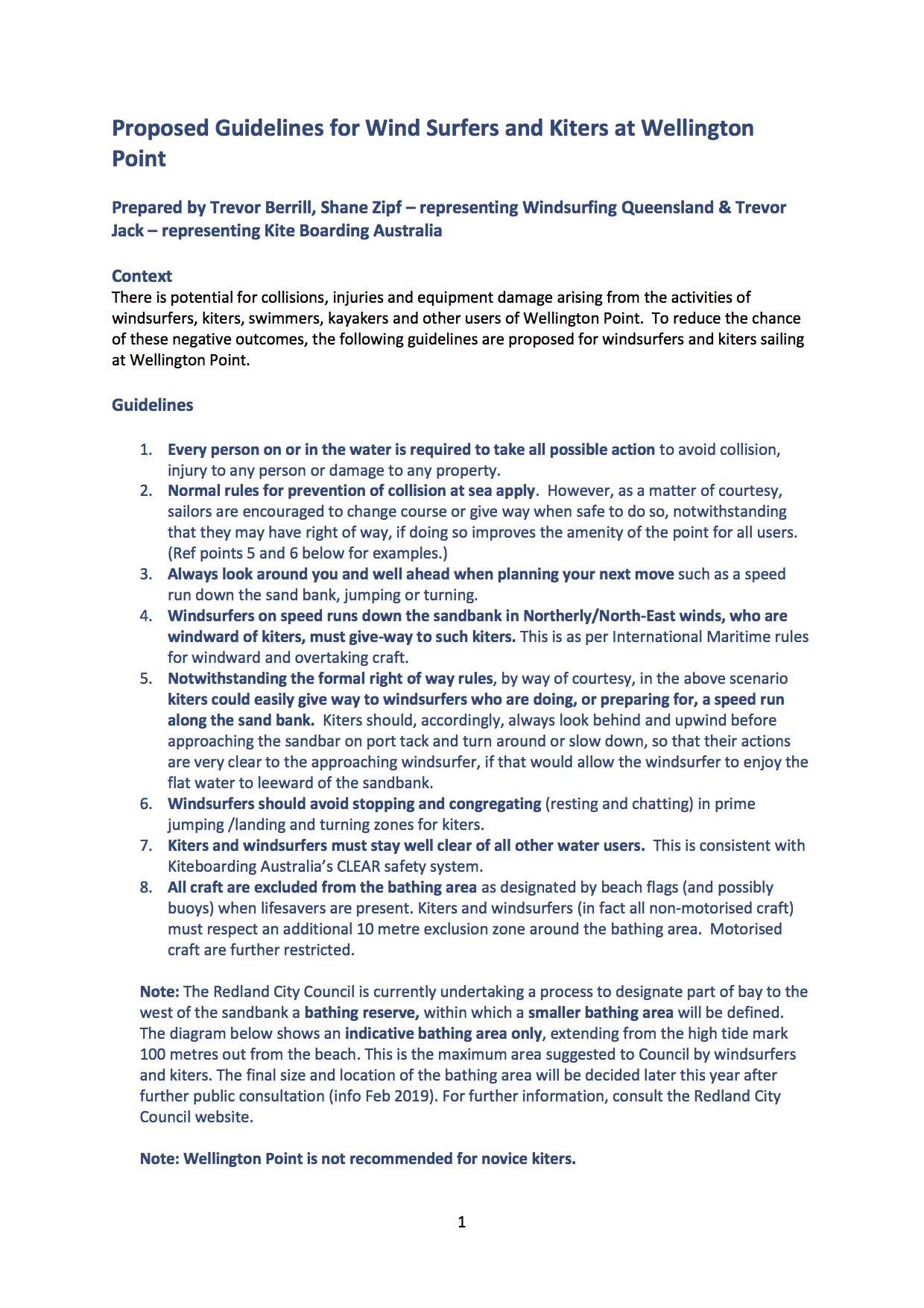 Proposed Bathing Area, Wellington Point, Redlands City Council; impact upon Wind and Kite Surfers