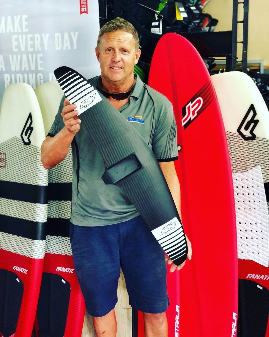 Derek Hamasaki's new custom Jimmy Lewis Flying V 4'6" X 24" wide foil board
