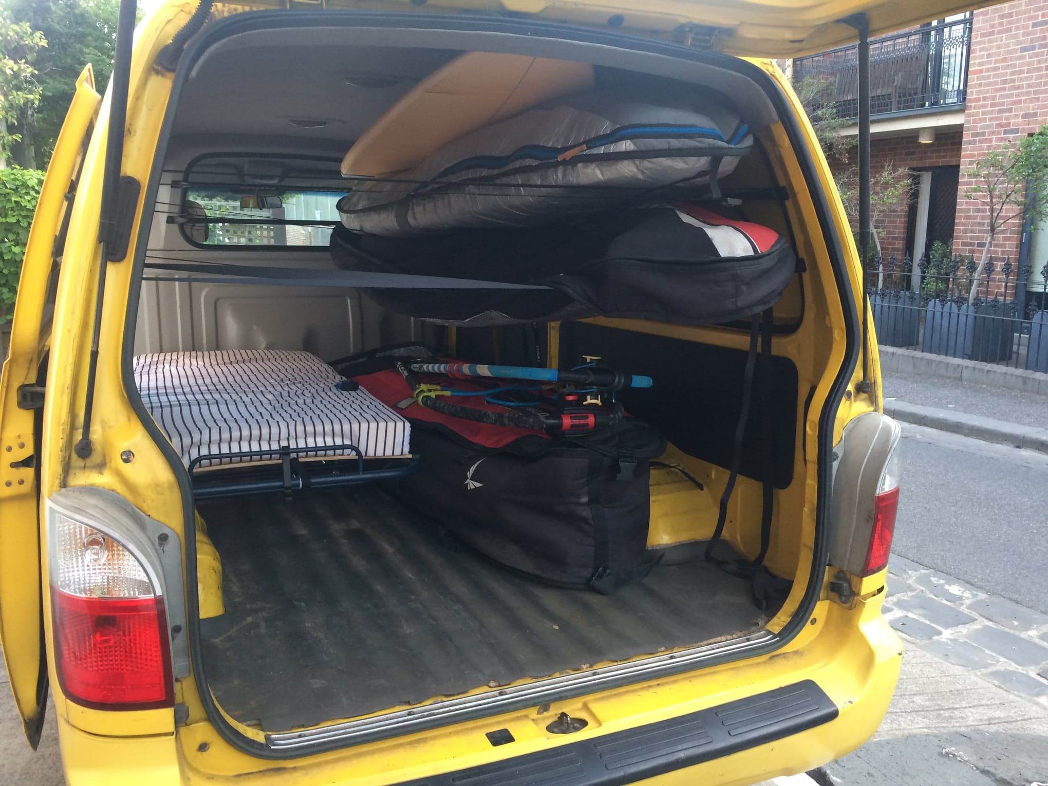 Windsurfing Kia Pregio van storage