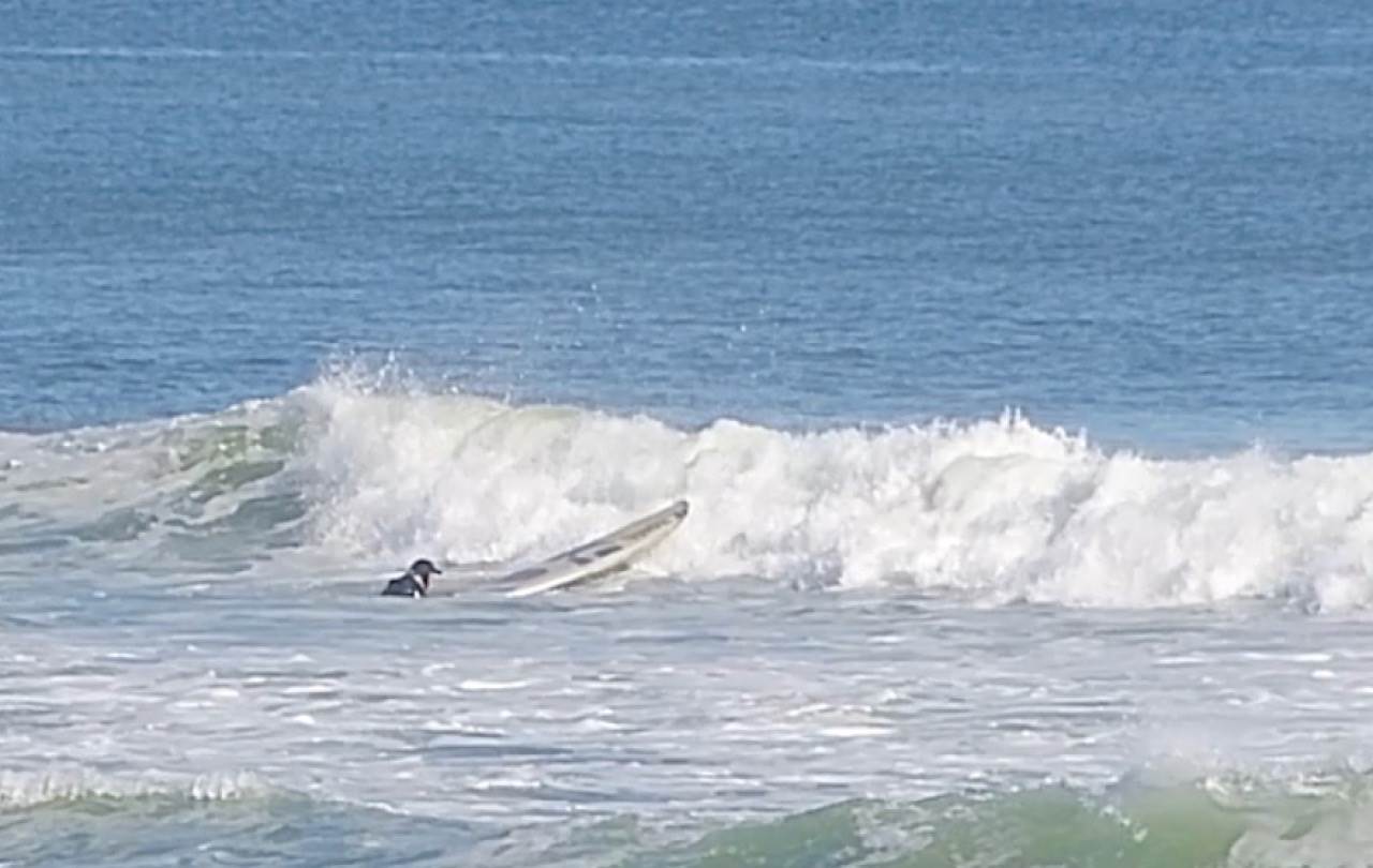 Ditching board in surf.