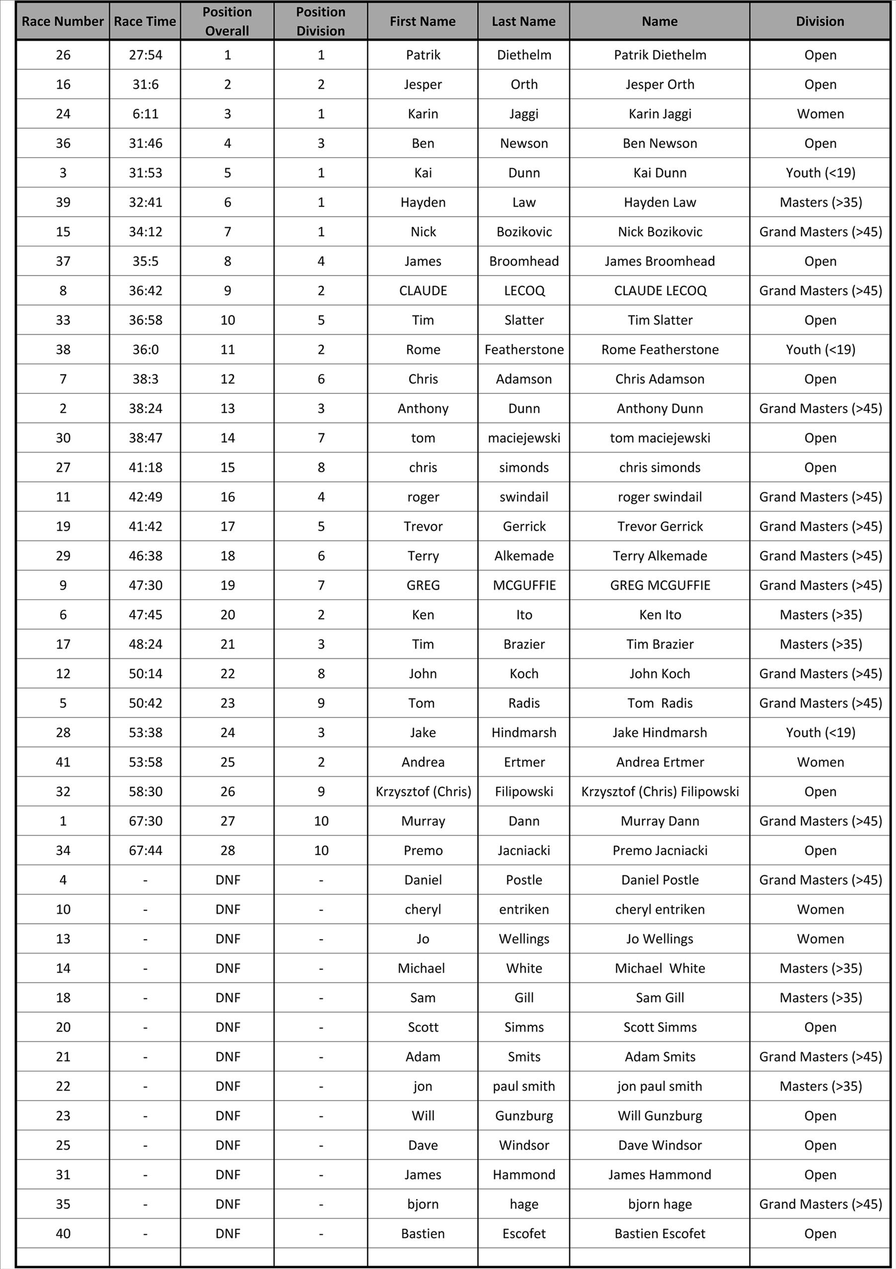 Screamin Leeman 2019 - RESULTS