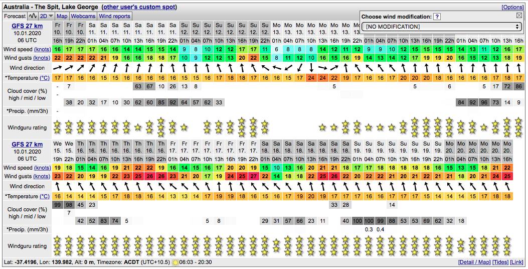 Windsurfing Windguru forecast
