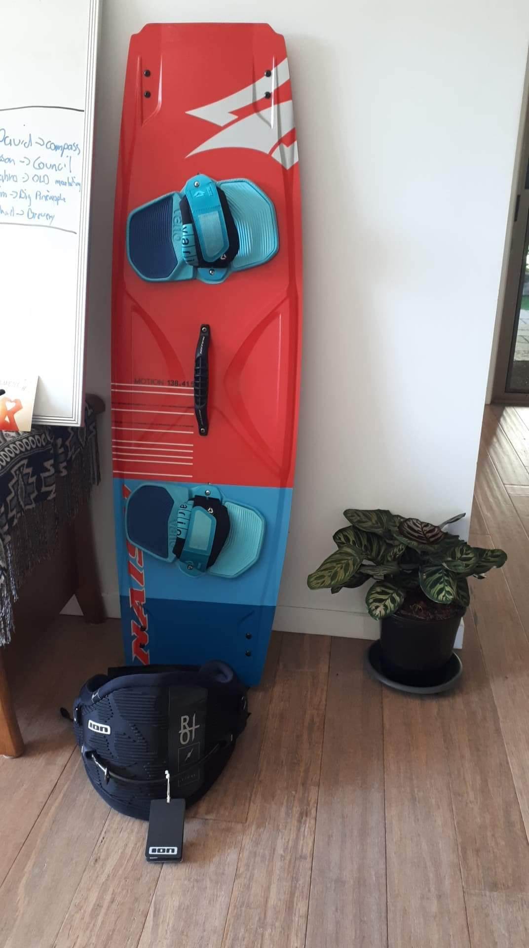 New Naish Motion 136 kiteboard with bright blue vario bindings