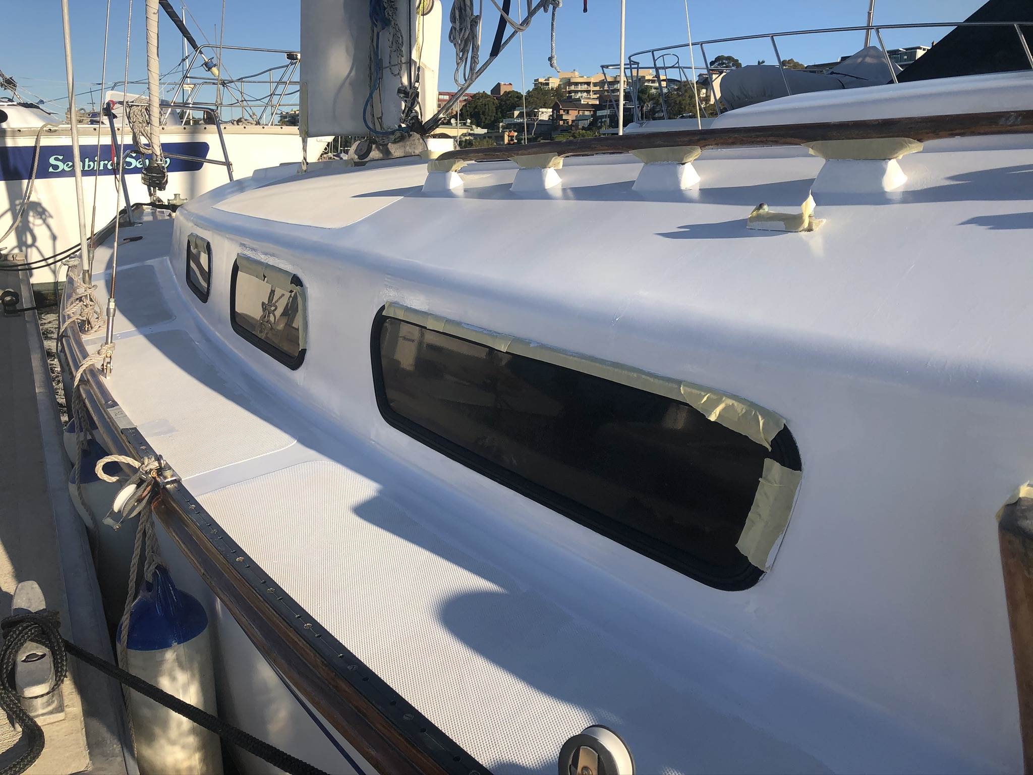 Painting the deck of an old boat