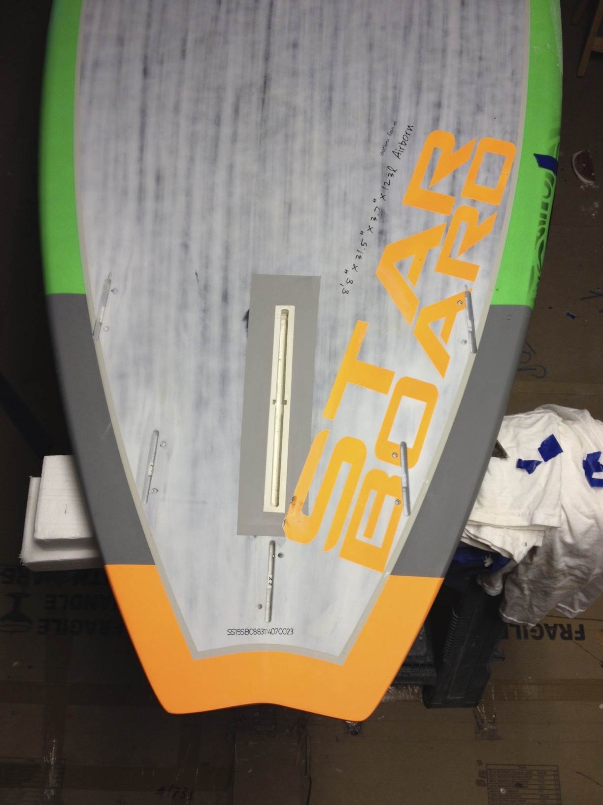 A large fin box in an Starboard Airborn 8.8