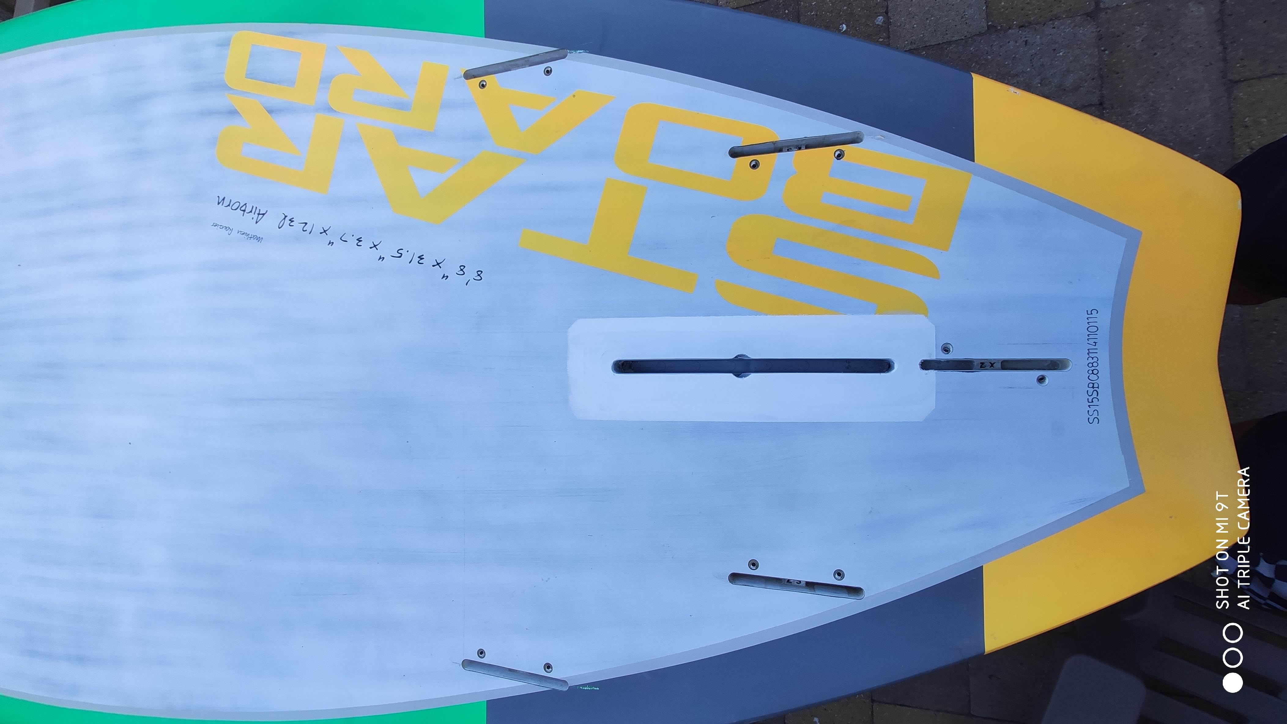 A large fin box in an Starboard Airborn 8.8