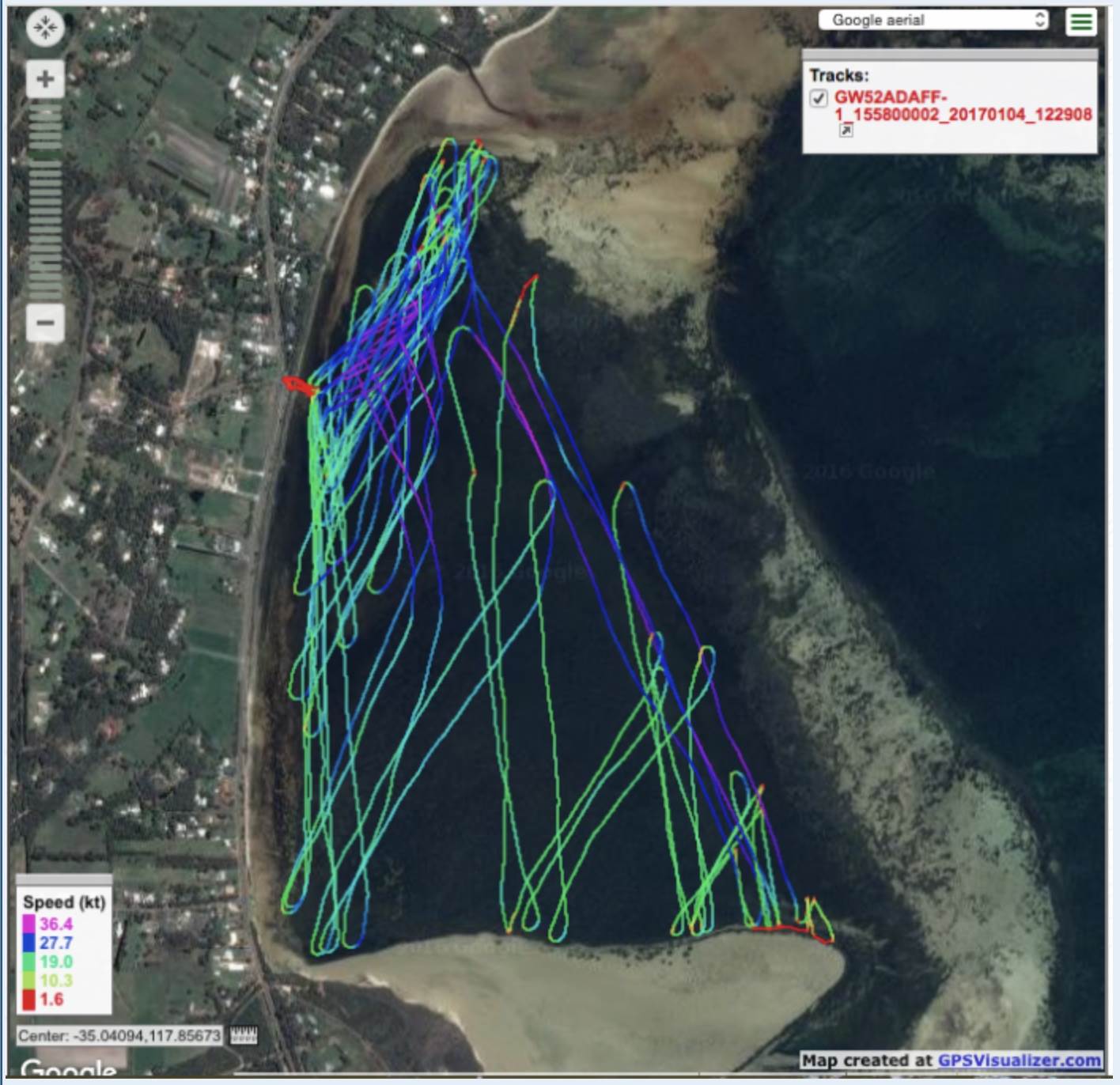 Windsurfing Albany January 2017 trackmap