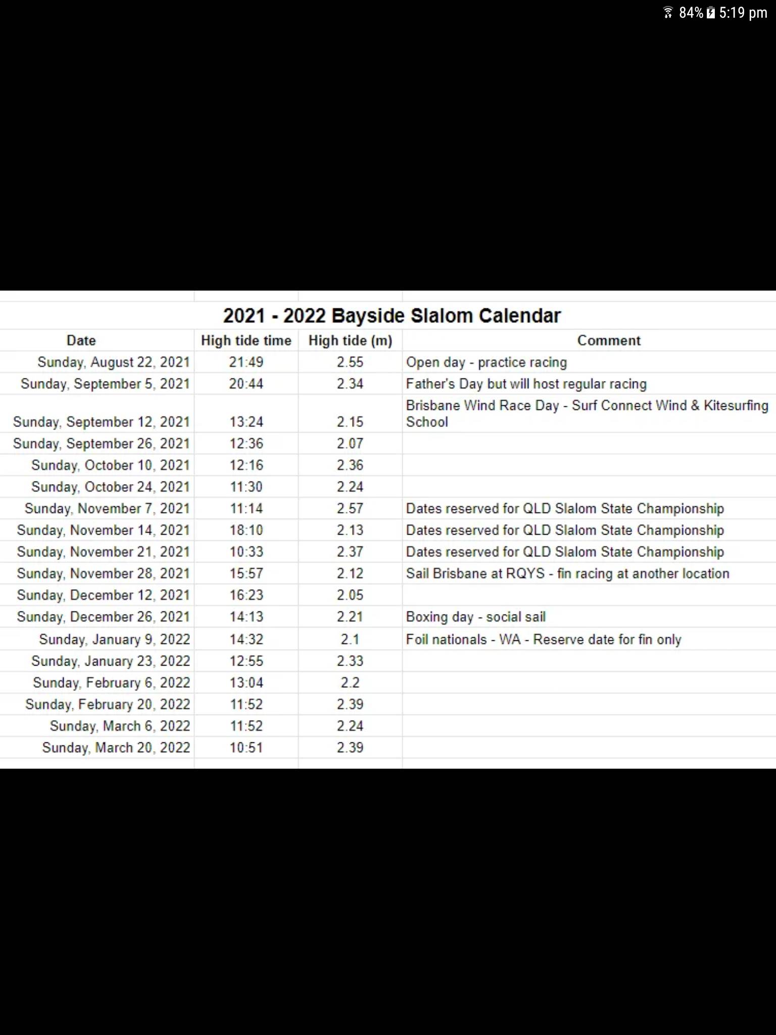 Wind Wings Bayside schedule 2021-22