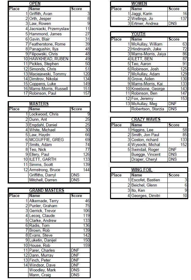 Windsurfing Categorised results