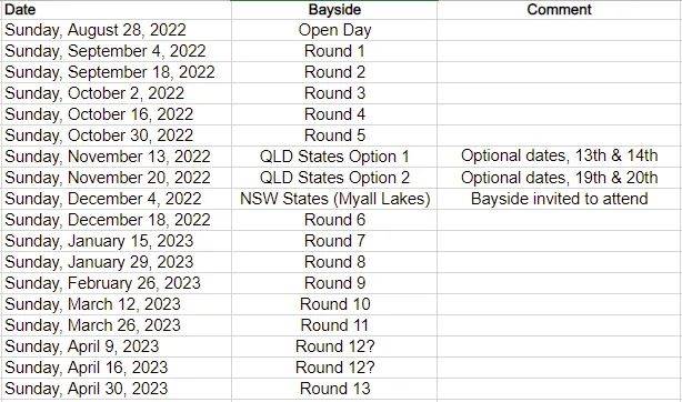 Windsurfing Bayside calendar