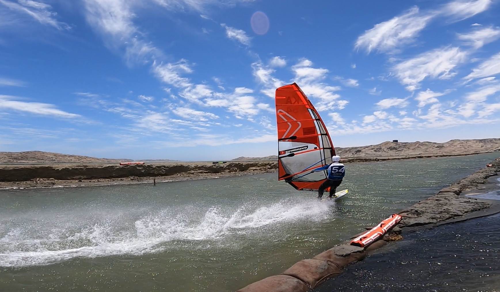 Windsurfing jason close to sandbags