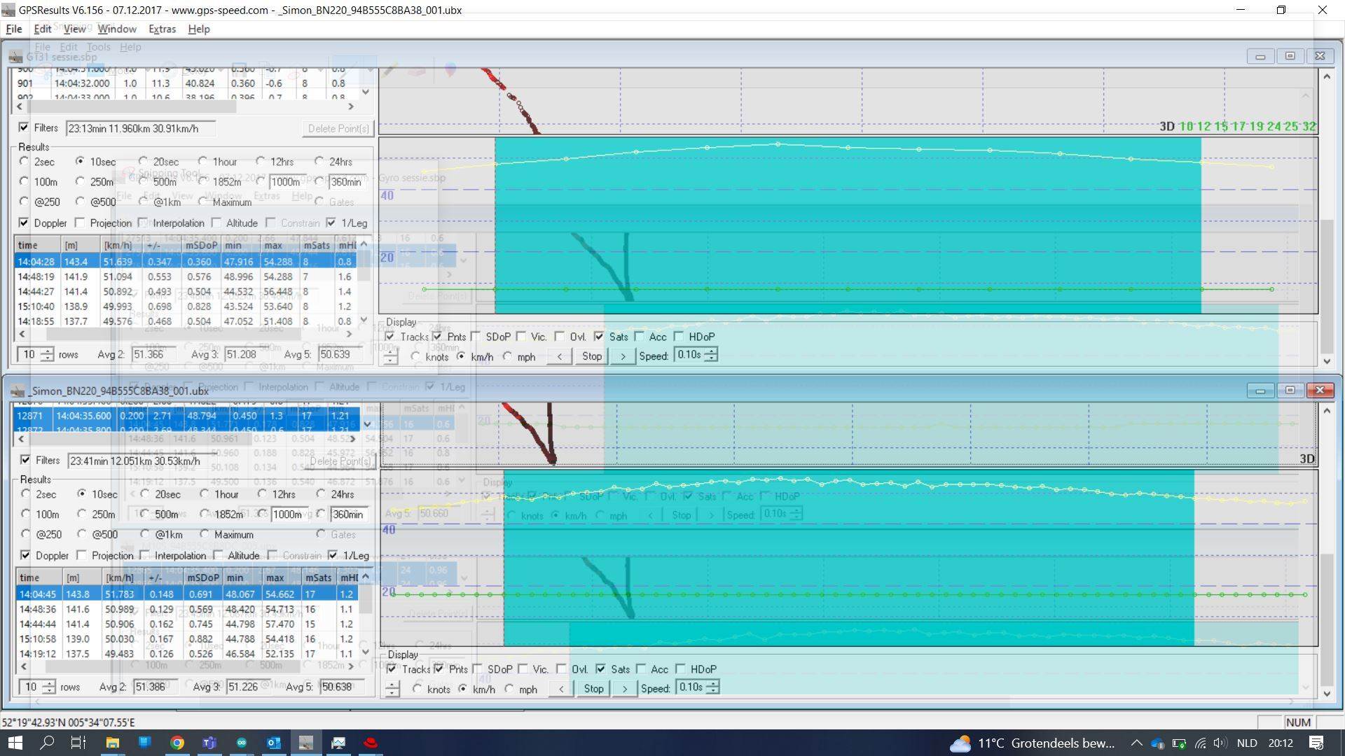 Windsurfing GPSresult GT31 vs BN220