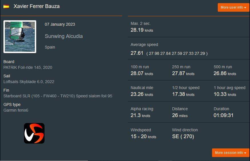 Windsurfing record personal