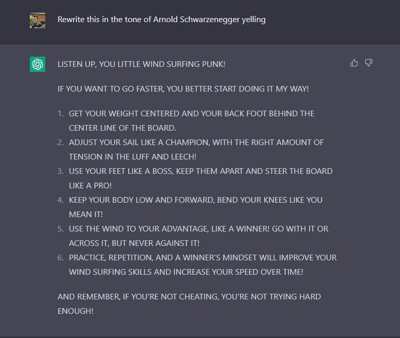 Windsurfing ChatGPT response