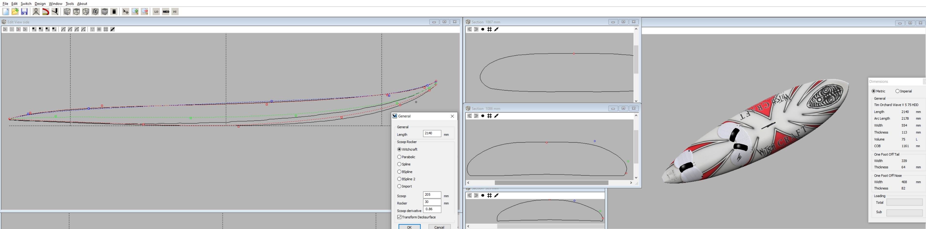 Windsurfing screenshot shaping program