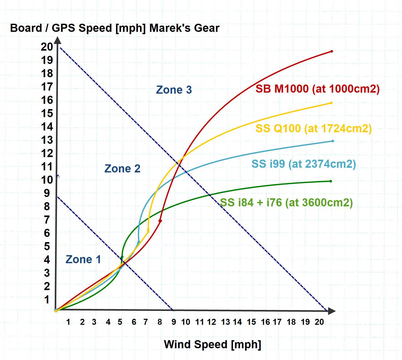 GPS Board Speed vs Wind Speed for different hydrofoils - Mareks Testing