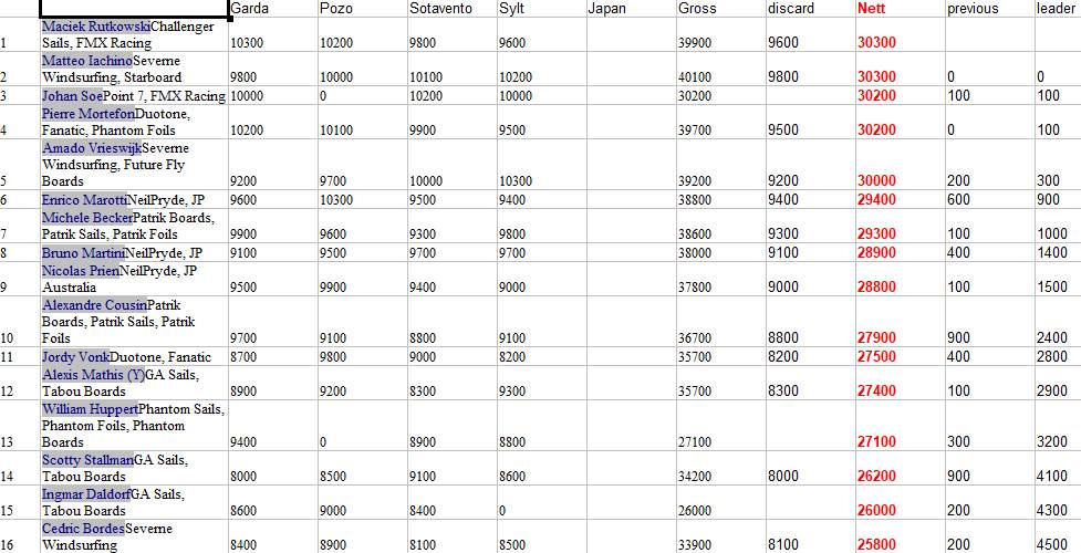 Windsurfing PWA slalom rankings Sylt E7