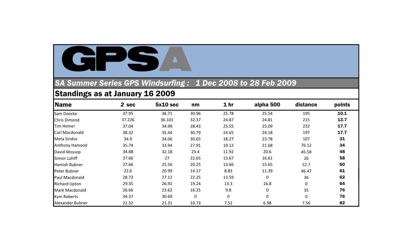 Windsurfing Starboard GPSA Jan Results