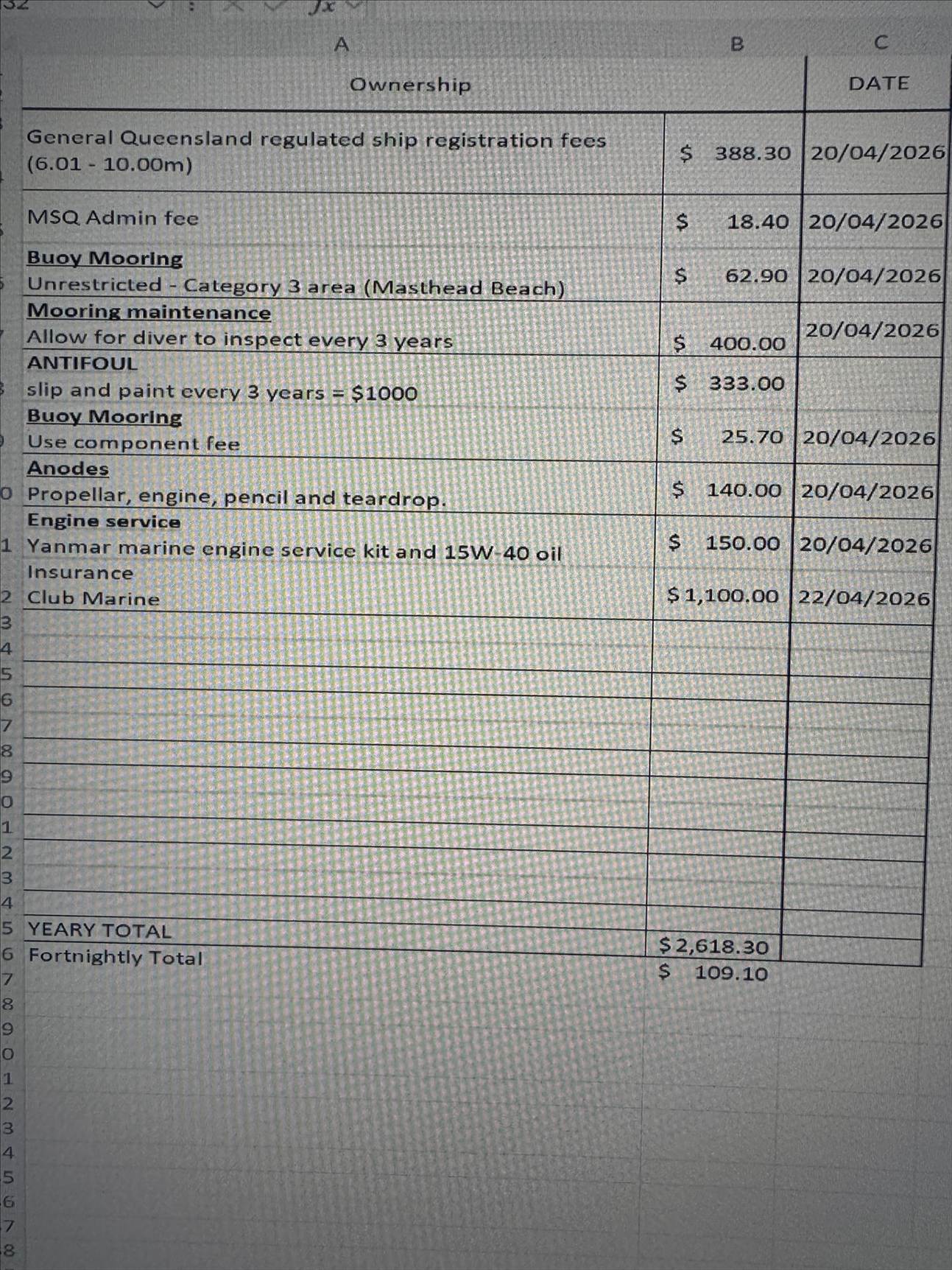 Sailing Expenses