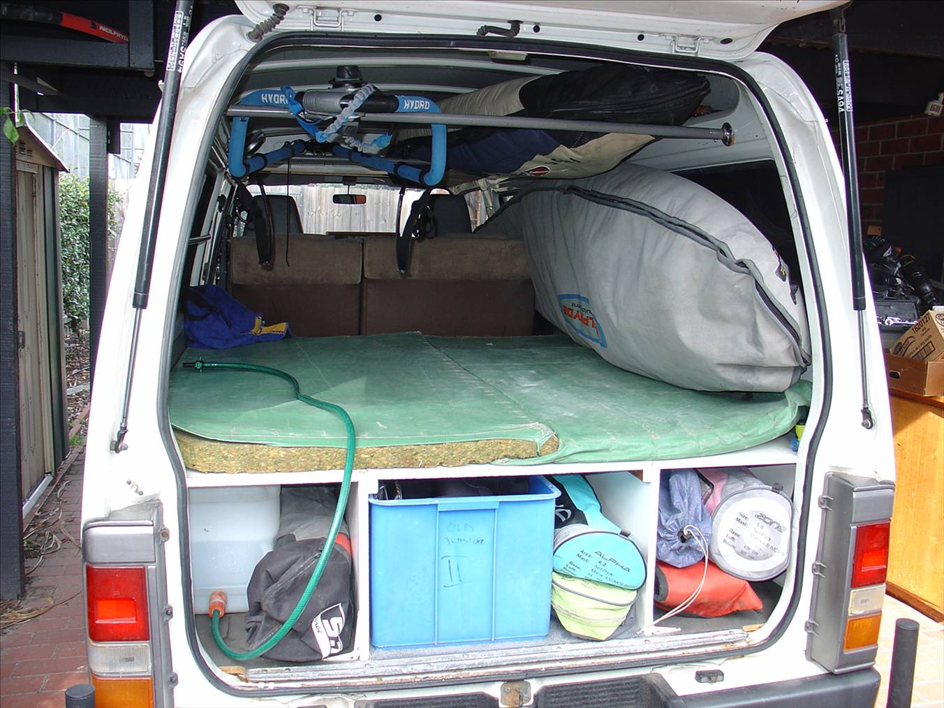 Jamie snowboard in PJ's and Petes van 021