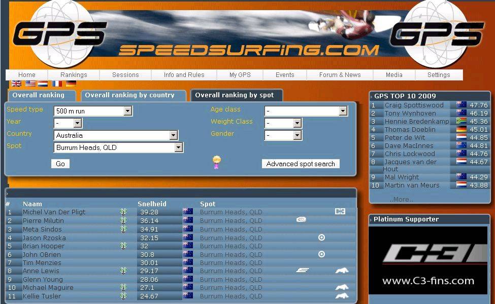 Windsurfing 500m Burrum Heads Ranking