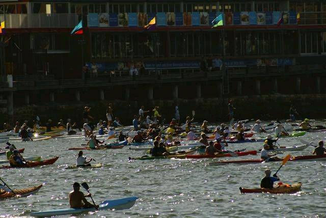 Bridge to beach paddle/swim race