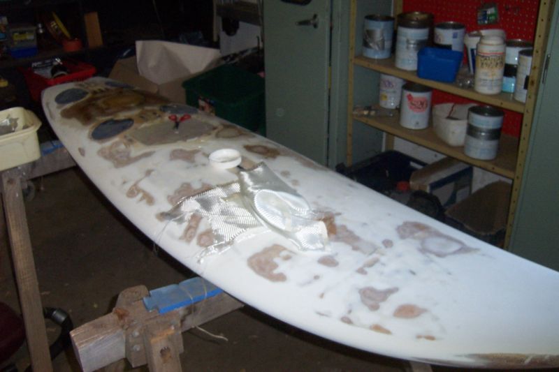 Windsurfing fiber glassing of board