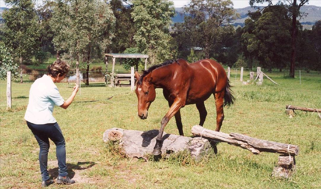 Come on straddle this log.. Good boy!