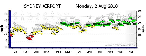Sydney Airport wind 2nd August 2010