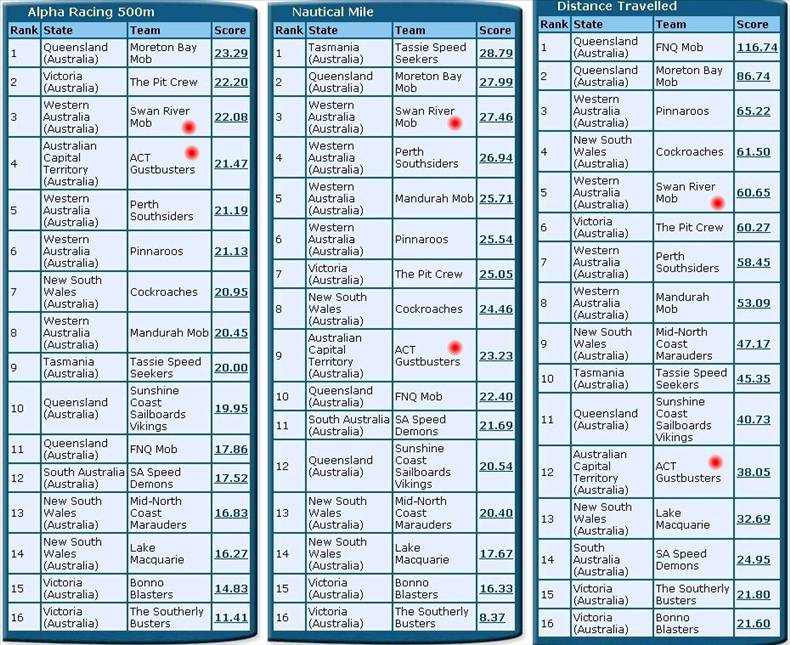 GPSTC WINDSURFING "ASHES SERIES" TWO SCOREBOARD