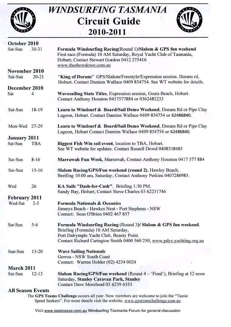 Windsurfing Calender of Events