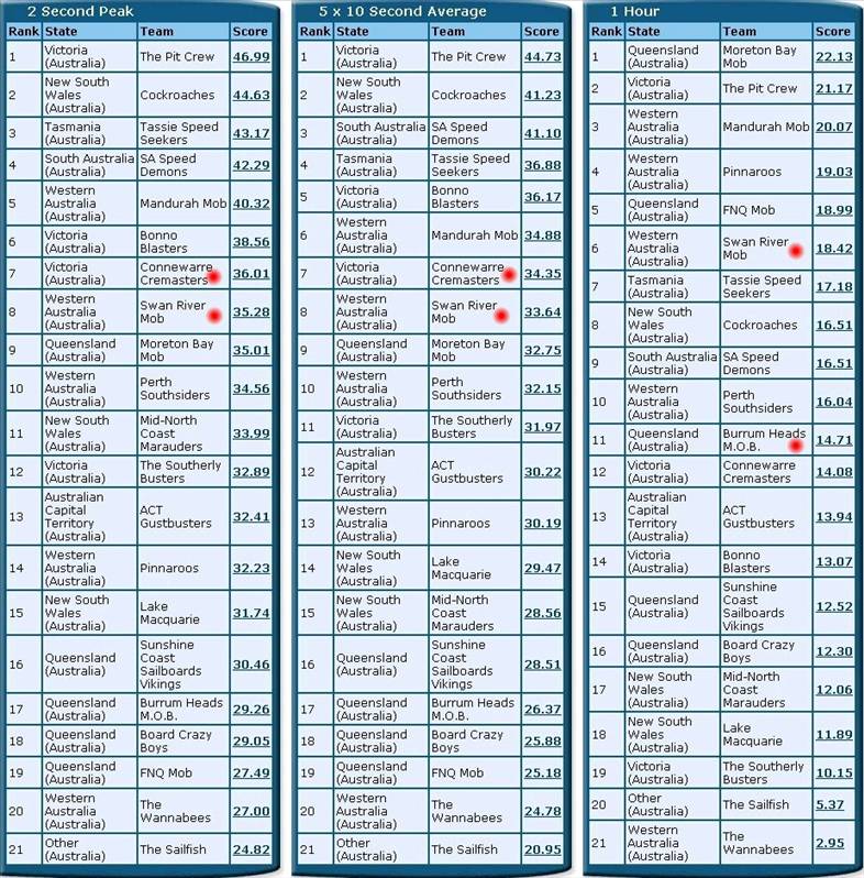GPSTC WINDSURFING "ASHES SERIES" TWO SCOREBOARD