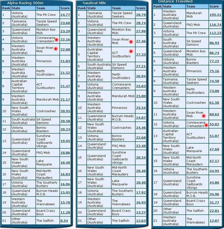 GPSTC WINDSURFING "ASHES SERIES" TWO SCOREBOARD