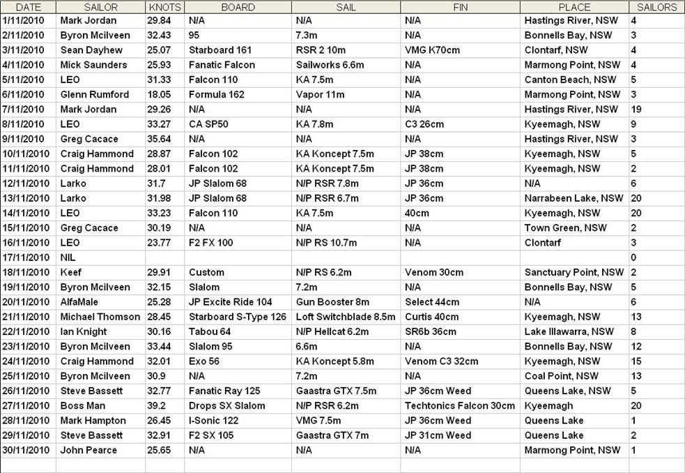 November Daily Top Speeds 2010